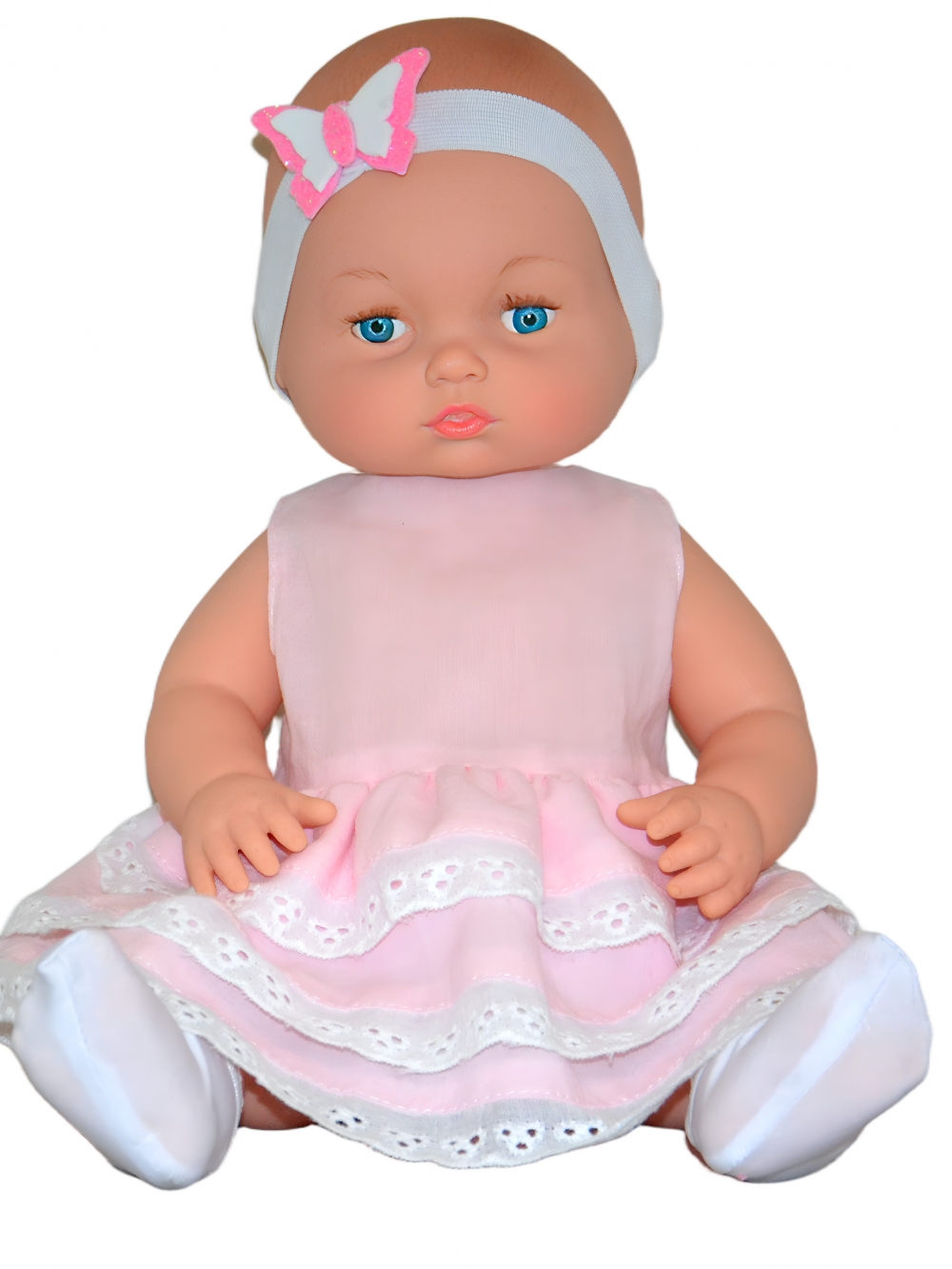 Иванка – милая, очаровательная малышка-пупс с открытым доверчивым взглядом. У нее выразительные, не закрывающиеся глаза с пушистыми ресницами. Парик рельефный (имитация волос). Иванка изготовлена из пластиката ПВХ. Кукла может сидеть на горизонтальной поверхности, ручки и ножки могут вращаться. У Иванки пухлые щечки и милые складочки на ручках и ножках, каждый пальчик проработан.