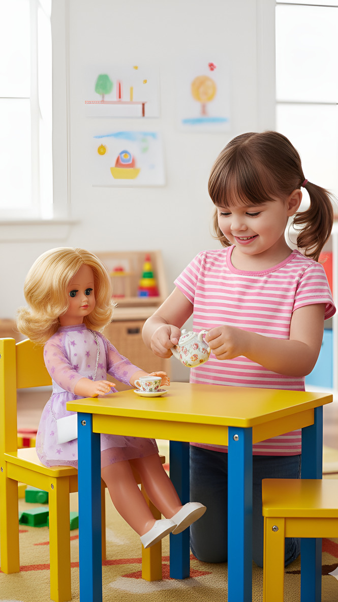 2.Поставить куклу на гладкую поверхность, держа её за левую руку.