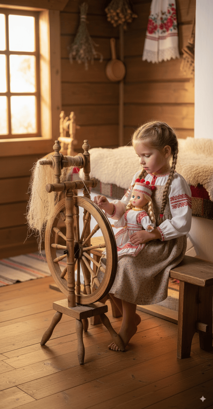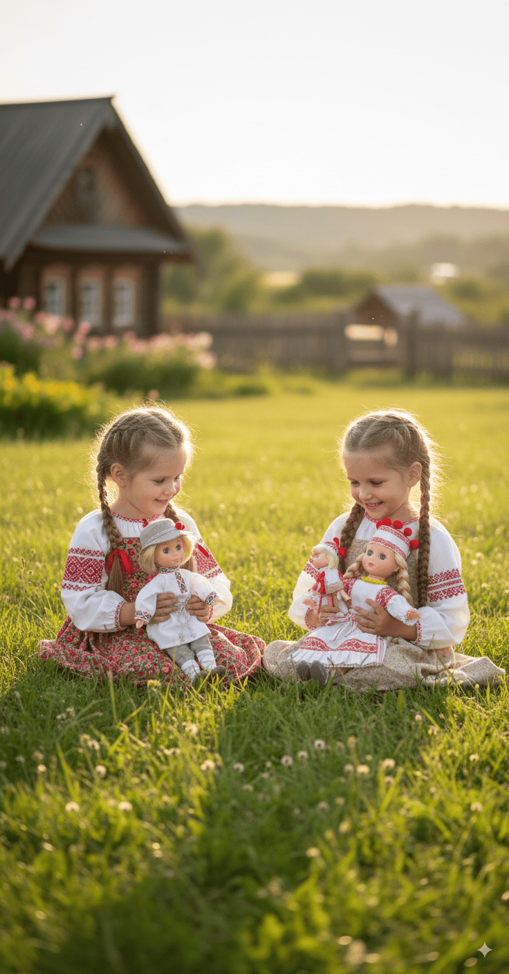 Перед вами предстает очаровательная пара – куклы Ясь и Янина, являющиеся воплощением белорусской народной души и облаченные в торжественные, традиционные костюмы, сотканные из чистоты льна и древних обережных узоров. Эти куклы — не просто игрушки, это хранители истории, в чьих нарядах оживает песня полей и мудрость предков.Янина, словно сошедшая с праздничного полотна, пленяет взгляд своей лучезарной красотой.Её наряд — это ода чистому белому цвету, который символизирует свет и духовность. Пышная рубаха из белого льна украшена великолепной красной вышивкой, сияющей, как ягоды рябины. Этот яркий орнамент в виде ромбов и крестов охватывает плечи и лиф, становясь мощным оберегом и украшением.