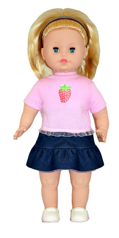 Кукла может быть озвучена приятным детским голосом. Звуковой прибор установлен в туловище. При нажатии на звуковой прибор кукла произносит 12 фраз: "Привет! Давай дружить! Я твоя игрушка, а ты моя подружка! Я красивая задорная девчонка, очень модная! Мой девиз: модной и стильной быть всегда, любая девочка должна! Еще я люблю петь и танцевать! А ты? Ты знаешь красивую песенку? Споешь мне? Спой пожалуйста! Молодец!Замечательная песенка! Давай поиграем! А теперь расскажи о себе! Ты просто супер! Думаю мы с тобой обязательно подружимся!"