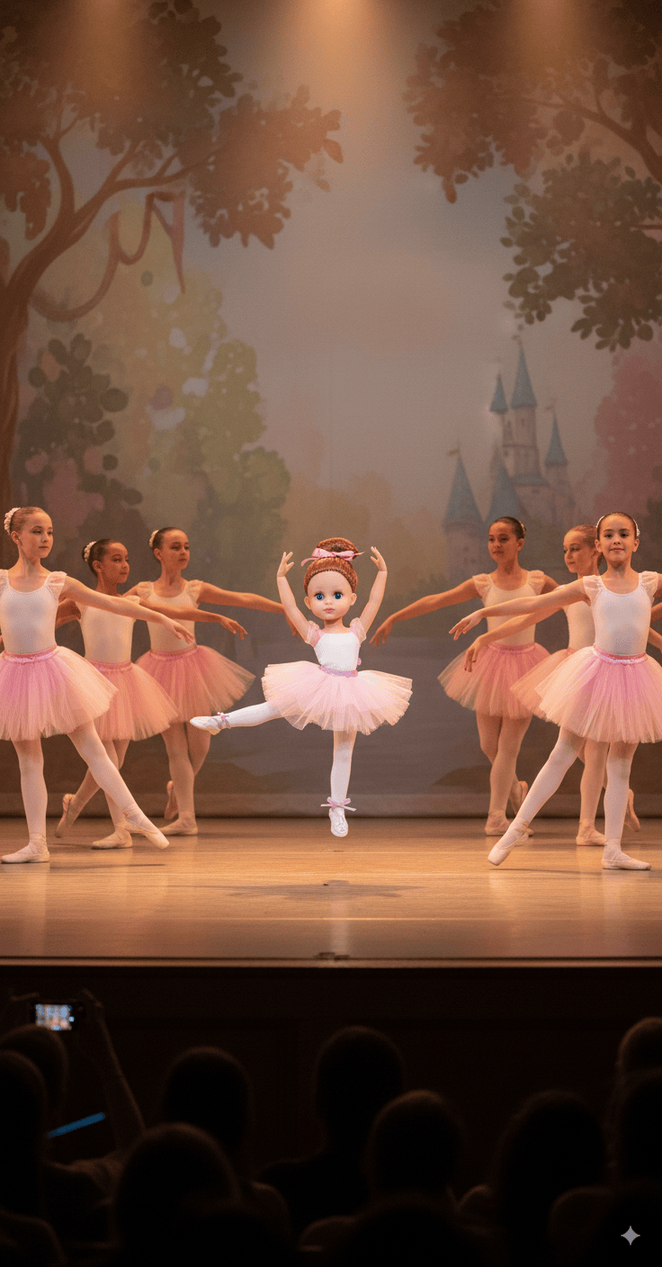 Вероника-балерина – милая, очаровательная кукла-девочка, в наряде балерины. Кукла в игровой форме познакомит ребенка с этой профессией. У нее выразительные, не закрывающиеся глазки с пушистыми ресничками. Волосы куклы похожи на натуральные, их можно расчесывать и укладывать в различные прически. Кукла изготовлена из пластиката ПВХ. Руки и ноги у куклы могут вращаться . Кукла может сидеть на горизонтальной поверхности.