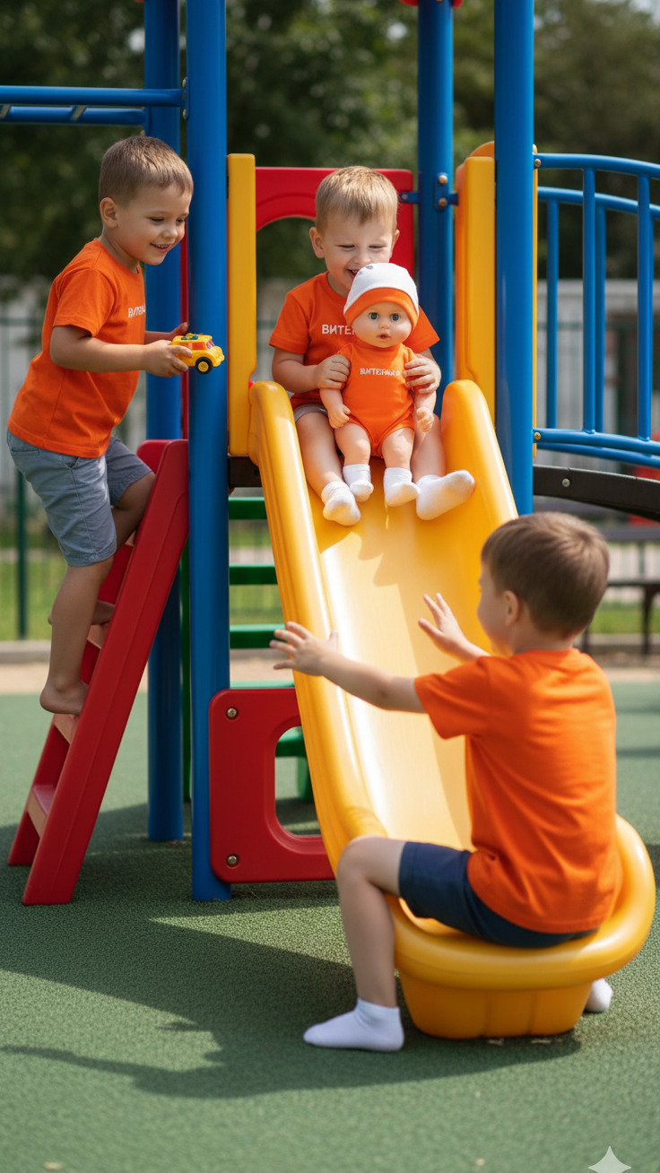 Витенька – малыш-пупс с правильными пропорциями тела и милым личиком. Витенька выглядит очень правдоподобно, совсем как настоящий маленький ребенок. У него реалистичные, закрывающиеся глаза с густыми ресничками. Парик рельефный (имитация волос). Кукла изготовлена: голова, ручки и и ножки из пластиката ПВХ, туловище из полиэтилена. Ручки и ножки у куклы могут вращаться. Кукла может сидеть. Витенька может быть озвучен приятным детским голосом, он произносит более 6 фраз: "Привет! Давай дружить! Давай поиграем! Ты знаешь интересную сказку? Расскажи мне! Молодец! Мне очень понравилось! Я тебя люблю!." Витеньку можно купать, предварительно вынув звуковой модуль.